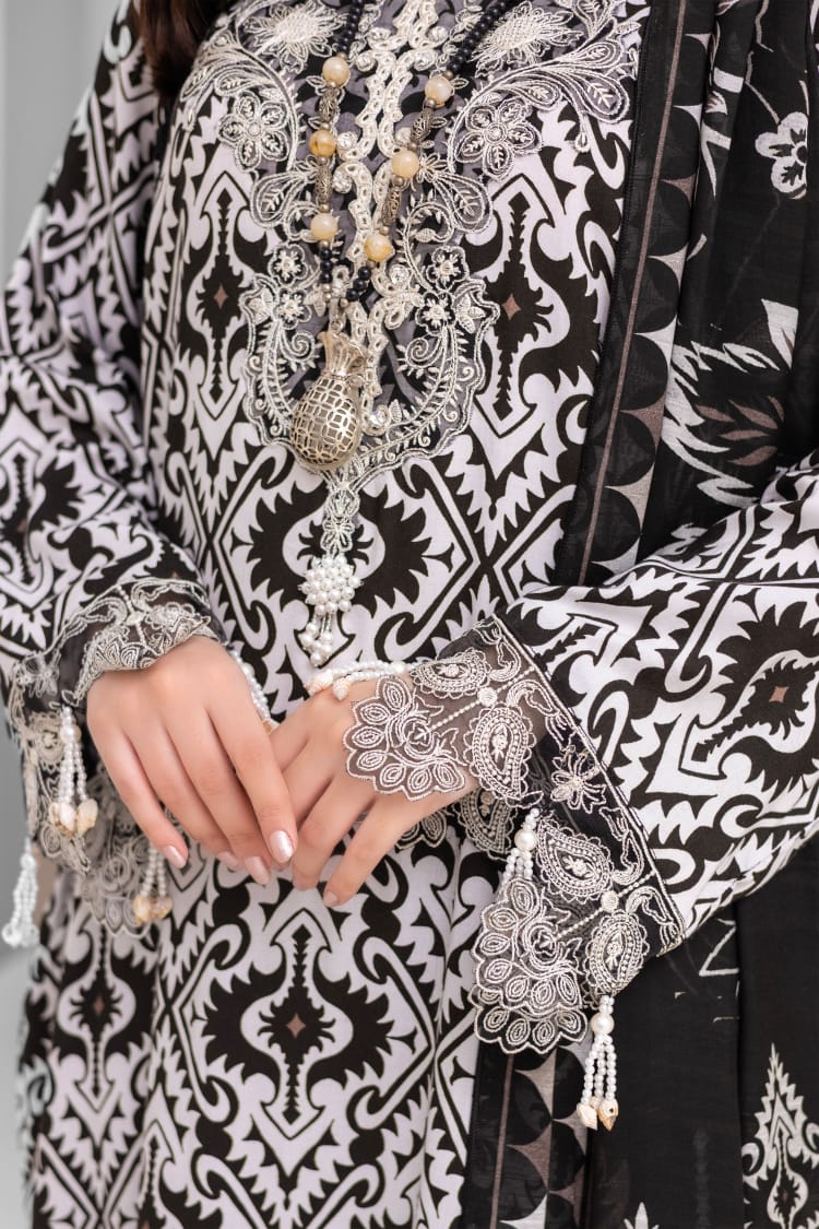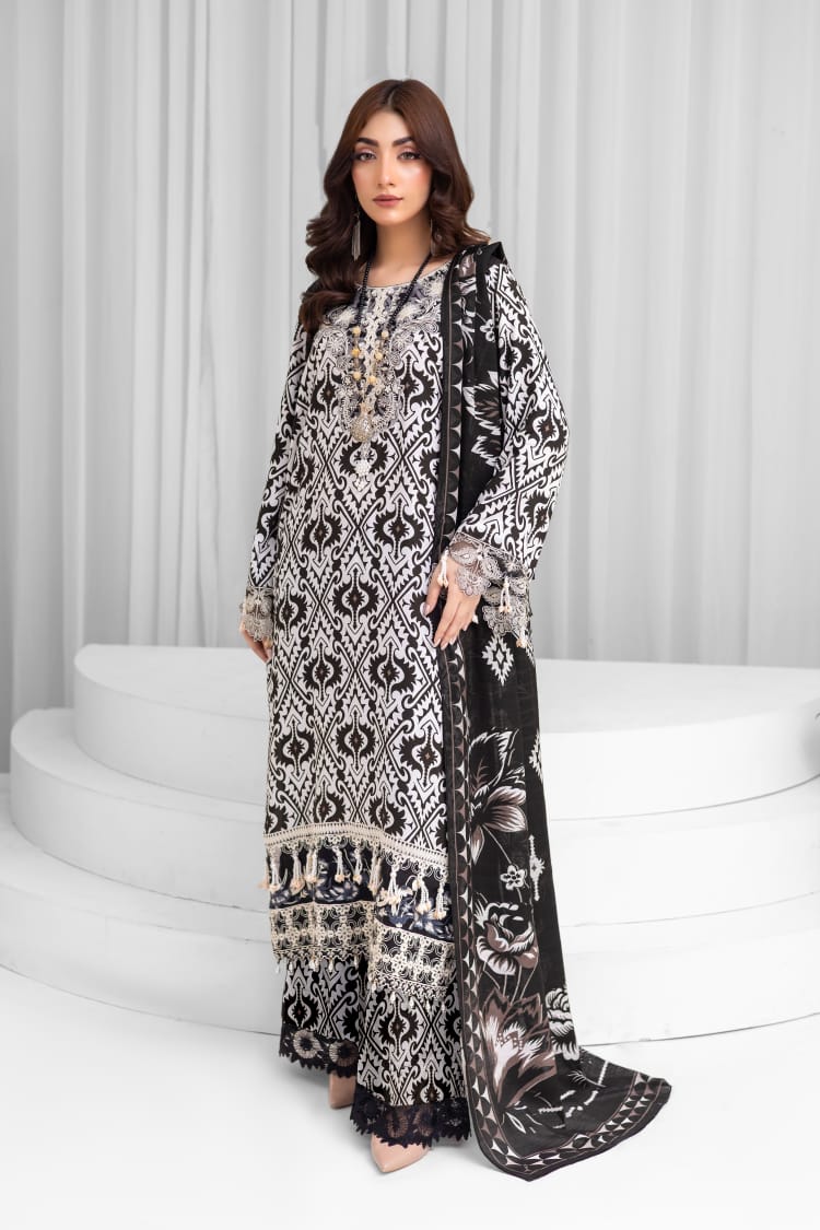 AY5 - Ladies Linen 3PC – Digital Print, Embroidery & Patch Work